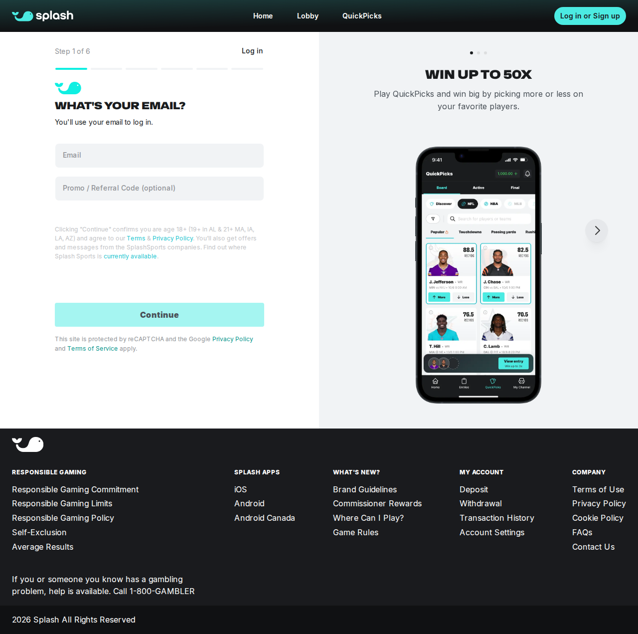 SplashSports Signup Flow Screenshots